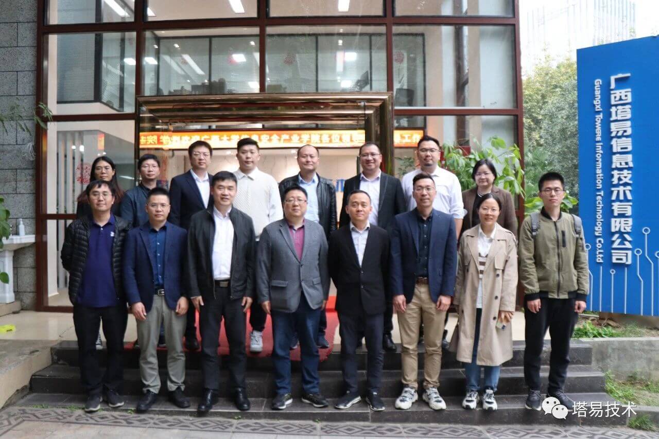 本次座谈会是产业学院2023年第一次工作会议,也是产业学院成立以来第一次在成员企业共襄盛举。广西大学计算机与电子信息学院常务副院长张振荣、信息安全系主任郑嘉利、副主任刘潇、专业教师杨锴博士、广西塔易信息技术有限公司副总经理-安全事业部总经理张冲、副总经理-产融事业部总经理龙振宁、安全事业部总监梁金、产融事业部总监甘继敏、总经理助理黄丽媚、产品和解决方案总监黄平、广西壮族自治区信息安全测评中心产学研基地副主任赵洪刚、数字广西集团有限公司数据安全部总经理黄醒乐,广西数广威奇科技有限公司副总经理蒋卓武、奇安信科技集团股份有限公司广西教育医疗行业总经理陈敏、技术总监马俊等领导同志参加座谈。