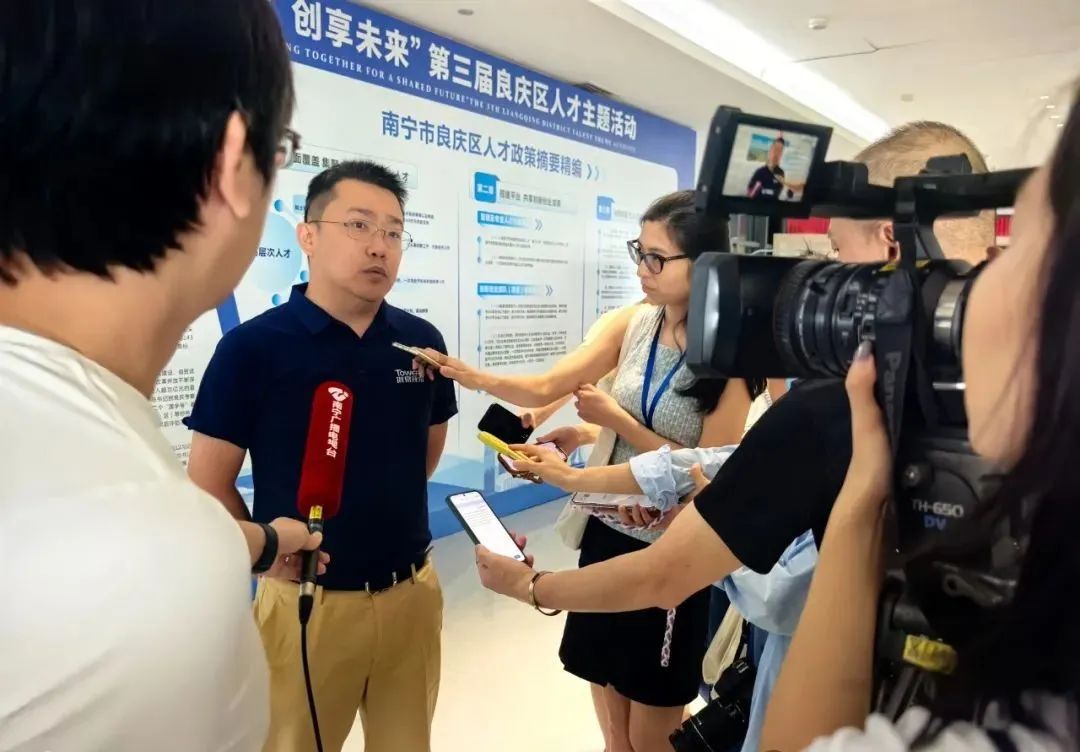 在活动开幕式圆满落幕之后,南宁市广播电视台对广西塔易信息技术有限公司与暨南大学的校企合作进行了深入采访,分别与魏林锋博士、颜靖总经理进行了交流。