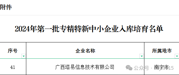 塔易技术成功入选自治区2024年第一批专精特新入库培育名单