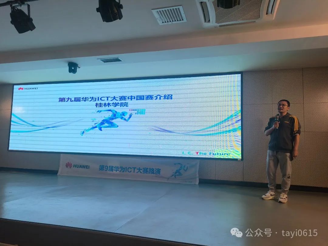 2024 年10 月 23 日,星期三,桂林学院成功举办了一场精彩的华为 ICT 大赛路演活动。本次路演吸引了众多师生的关注,为校园带来了浓厚的科技创新氛围。