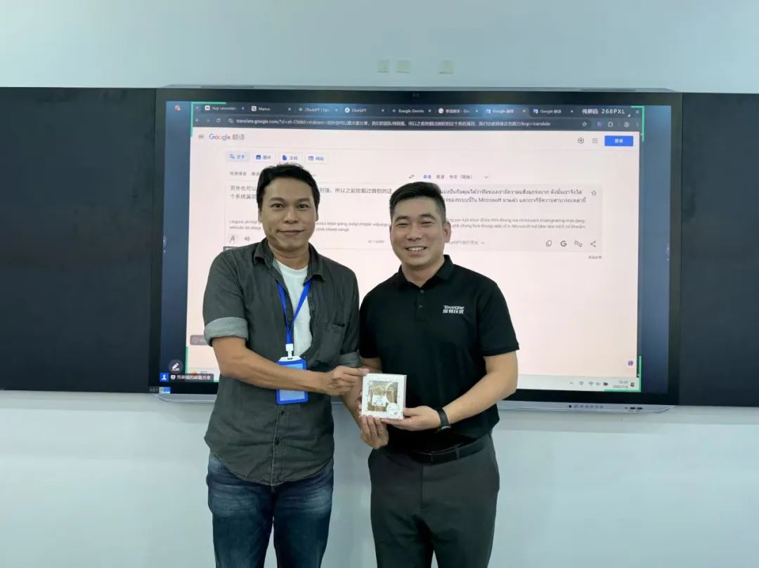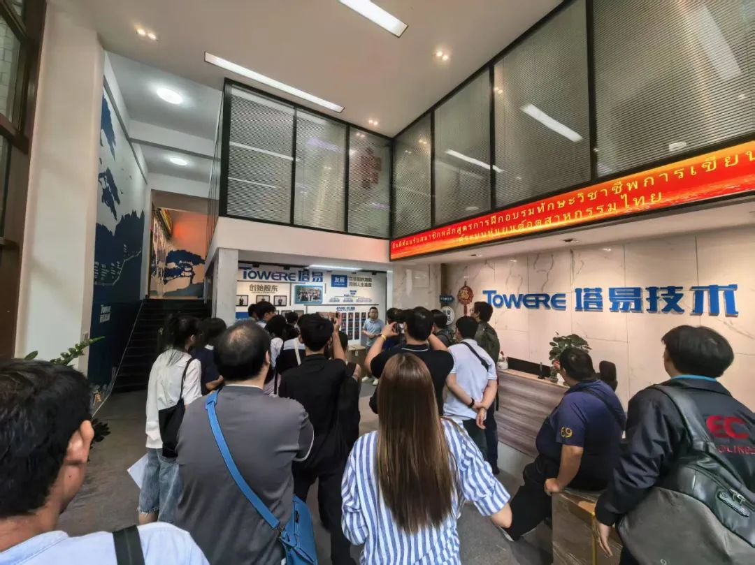 访问期间,培训班成员在塔易技术相关人员的陪同下,参观了企业文化墙、荣誉墙及智慧展厅,深入了解了公司在人工智能领域强大的研发实力与标志性成就。塔易技术产融事业部总监史忠杰先生热情接待了来宾,系统介绍了公司的整体发展状况,涵盖近年来市场拓展成就、持续研发投入及行业影响力提升等内容,为泰国学员提供了极具价值的产业实践洞察。