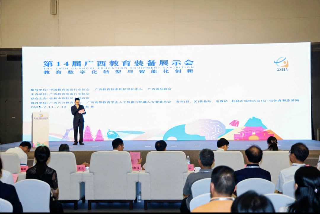展会同期举办的“2025广西高校人工智能通识课程建设研讨会”上,塔易技术副总经理郭智凡受邀出席并发表专题报告。他以“AI教学工作站—推进教学管理闭环实践”为题,分享了塔易技术在产教融合服务模式中的前沿实践。通过部署AI教学工作站,塔易成功助力合作院校建立涵盖教学实施、效果评估与持续优化的管理闭环体系,为培养适应智能化时代的创新人才提供了可复用的解决方案。