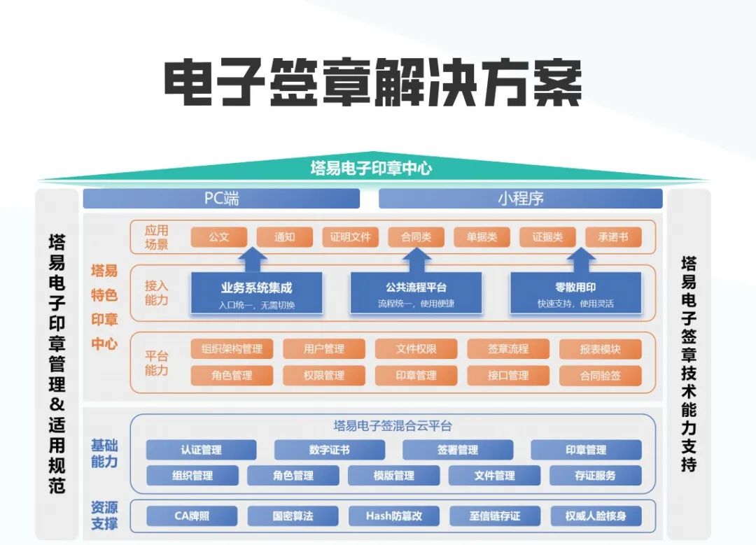 电子签章中台解决方案:提供符合《电子签名法》且融合区块链技术的全流程服务,集成权威人脸核身与CA认证。已助力客户实现签署效率提升50%、综合成本降低70%,与各业务系统对接,满足学校内部、学校与学生管理、学校与企业的各类用章需求。